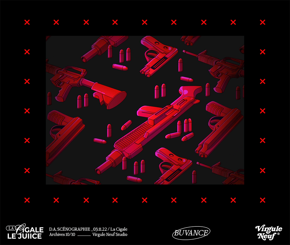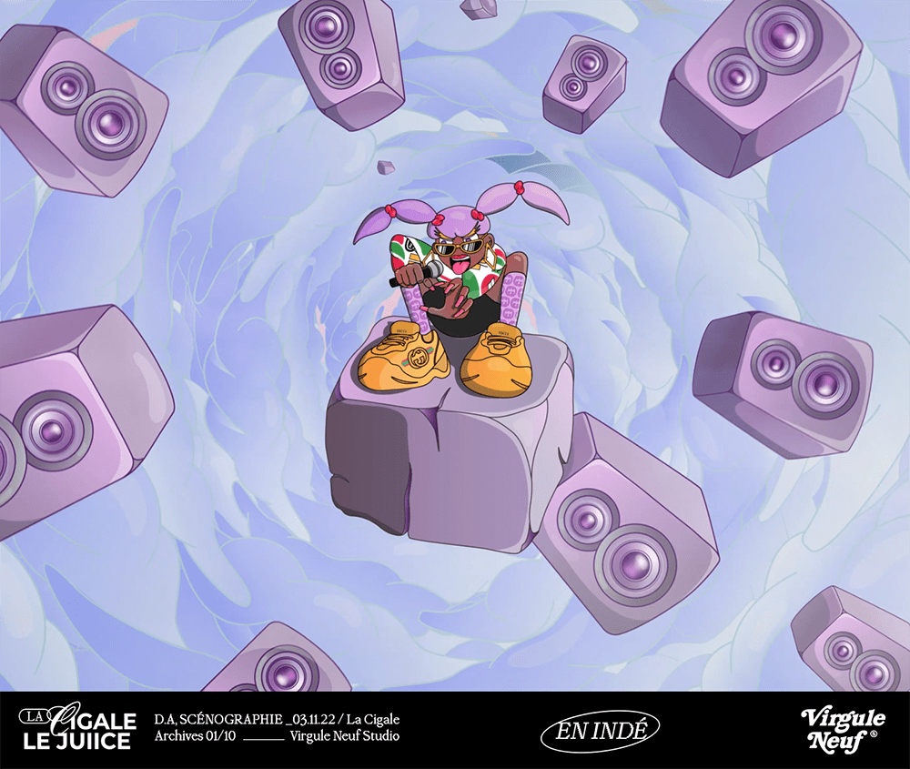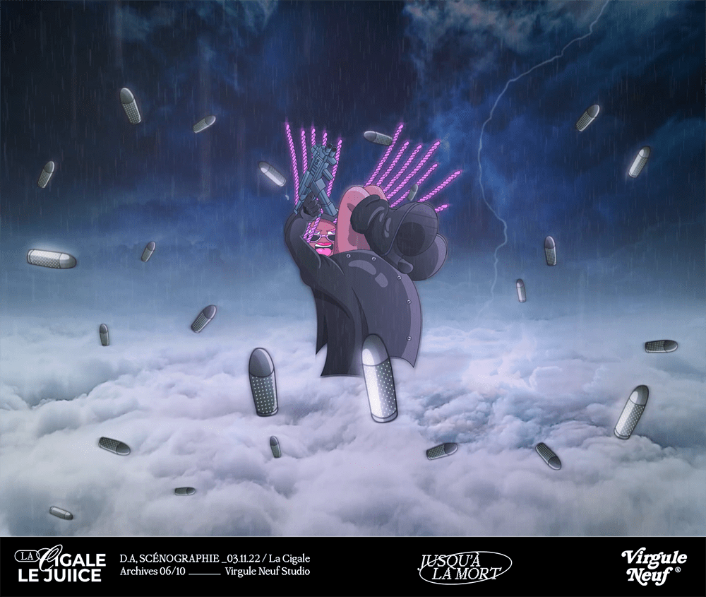 Le 03 novembre 2022 à eu lieu le concert de Le Juiice, artiste émergente de la scène rap, à la Cigale. Un show de pas moins de 3h rassemblant 4 artistes en première partie, et de nombreux invités surprise tout au long de la soirée. Il était ainsi primordiale d’inscrire un fil rouge et une D.A homogène tout au long de ce spectacle.
