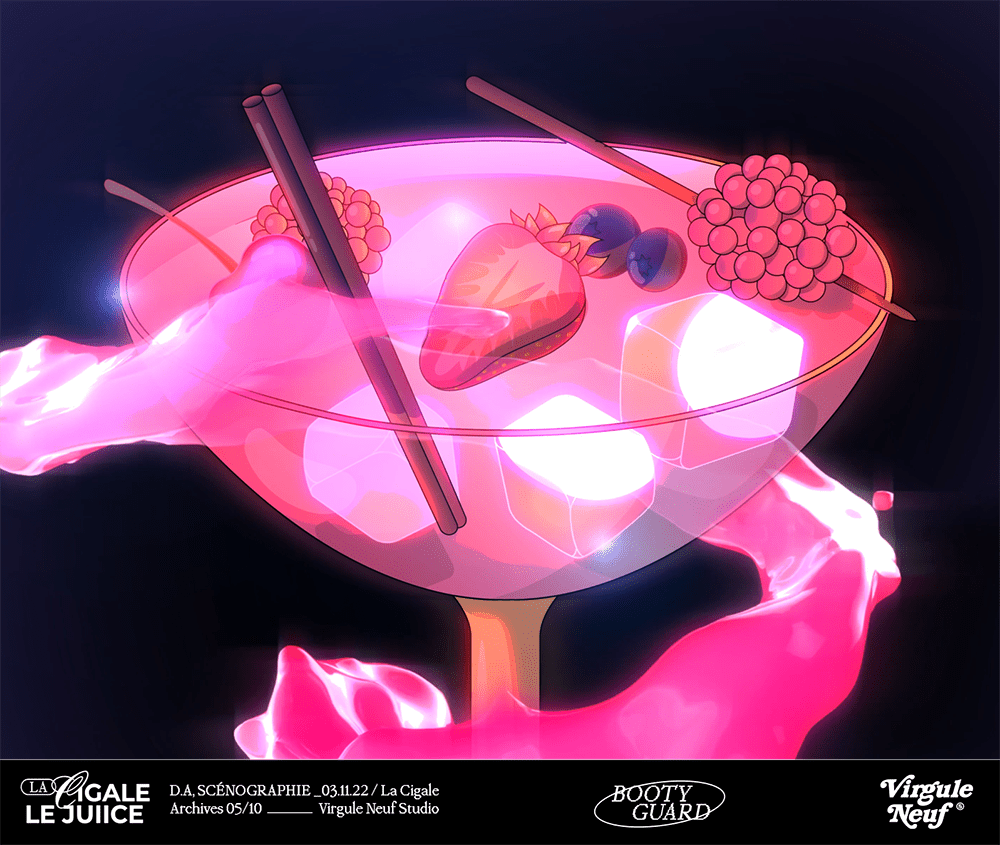 Pour sa performance individuelle, c’est une vingtaine de titres qui ont été illustrés et animés, afin de refléter le mood de chaque track et plonger La Cigale dans l’univers artistique de la Trap Mama. En communication constante avec le régisseur, je me suis adapté aux contraintes techniques de la salle de spectacle pour réaliser des visuels adaptés aux différents supports de diffusion.